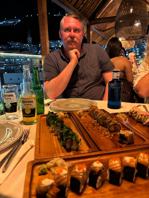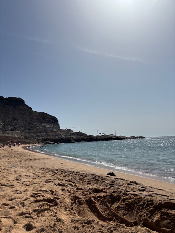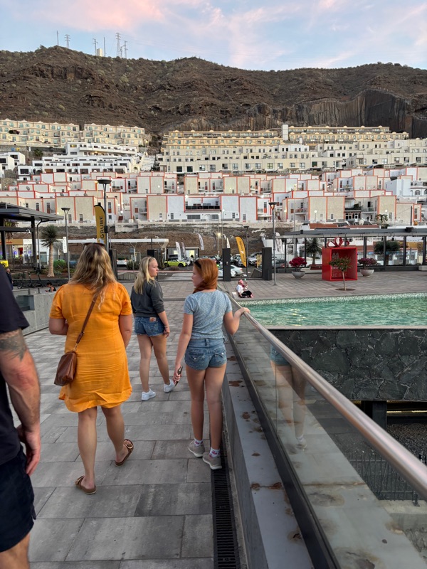 En lång morgonpromenad i morse genom gatorna i Puerto Rico, längs med strandpromenaden och tillbaka. Lite julklappshandel på Mogan Mall. Efter det guidade Stine oss till Mogan där vi gick runt lite innan vi landade på en lunch restaurang.