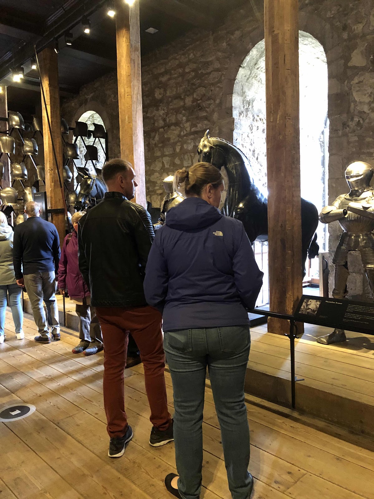 Vi sprang mellan skurarna. Första stoppet var en äkta Beefeater, han berättade om The Tower och om platsen utanför där många blev halshuggna. England har en väldigt blodig historia. På grund av regnet blev guidningen lite avbruten men vi fick istället besöka kyrkan som ligger inne i Tower. Här fick vi lyssna på en annan Beefeater och ställa de frågor vi ville. Efter det gick vi vidare och utforskade slottet/fortet/fängelset eller vad man vill kalla det. Vi såg det mesta men hoppade till sist över kronjuvelerna eftersom der var lång kö och regnade.