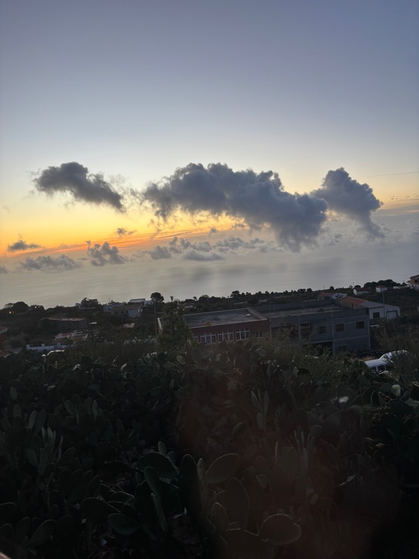 Väl framme på flygplatsen fick vi ut vår hyrbil och körde mot El Pinar. Det tog ca en halvtimme att hitta fram, solen började gå ner. Javier (som bara talar spanska) mötte oss och berättade om huset. En liten trädgård hörde med där det finns diverse örter till matlagning och jordgubbar.
