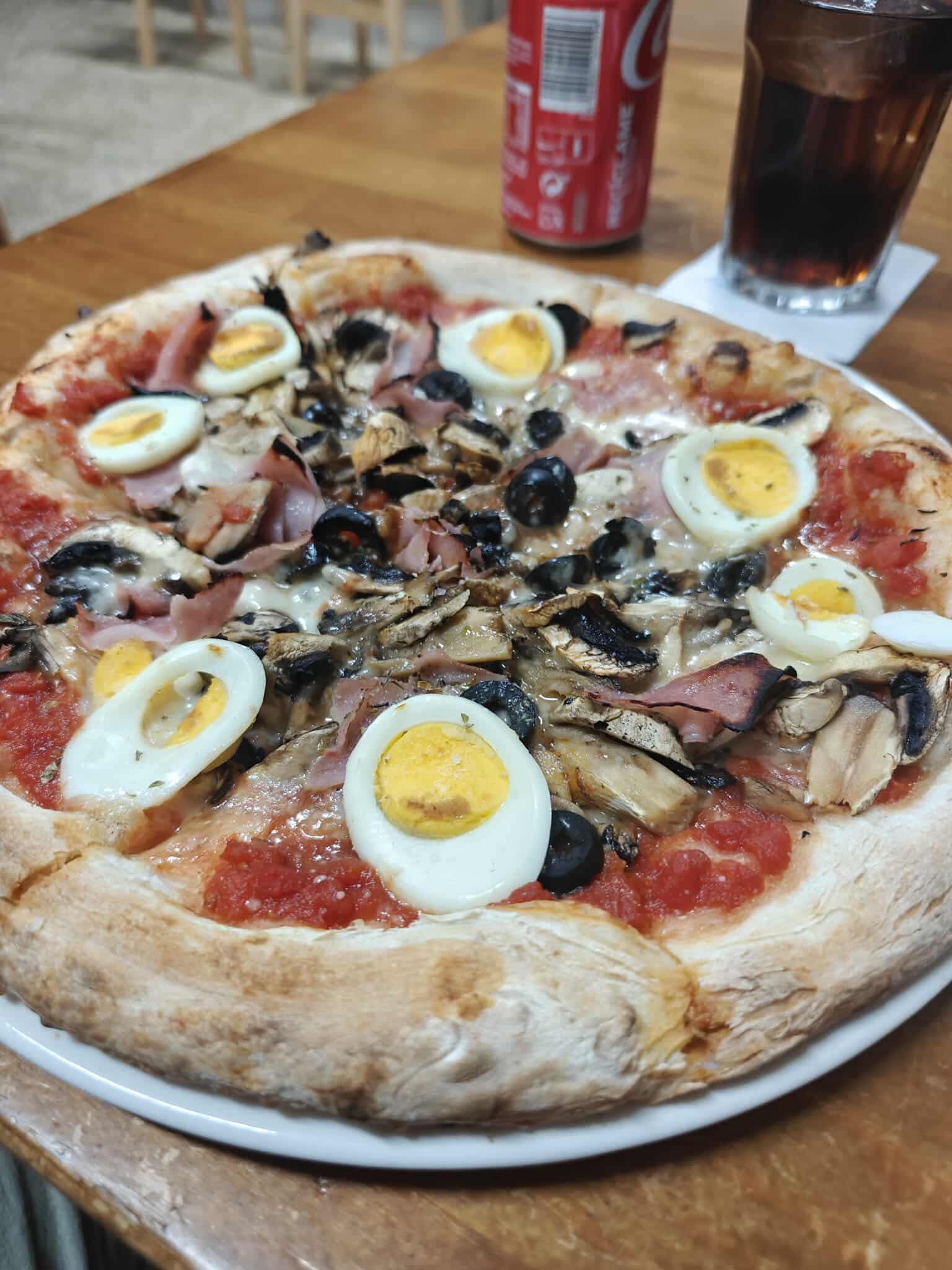 Vi hittade iallafall till en lokal pizzeria för att äta middag. Vi fick ett varmt välkomnande av hela familjen, den gladaste pizzakock jag mött. Han skrattade så taket lyfte sig. Lite senare fick vi även besök av flera lokala ”hjältar ” och en katt…