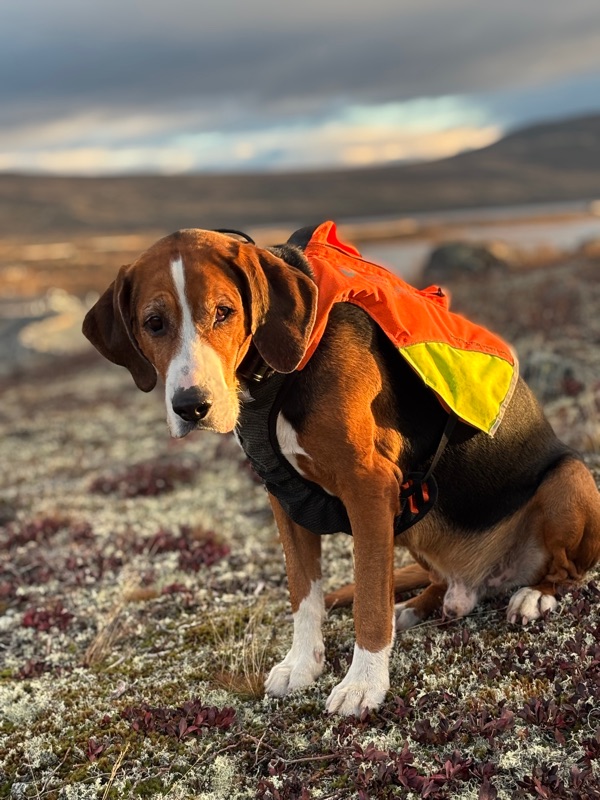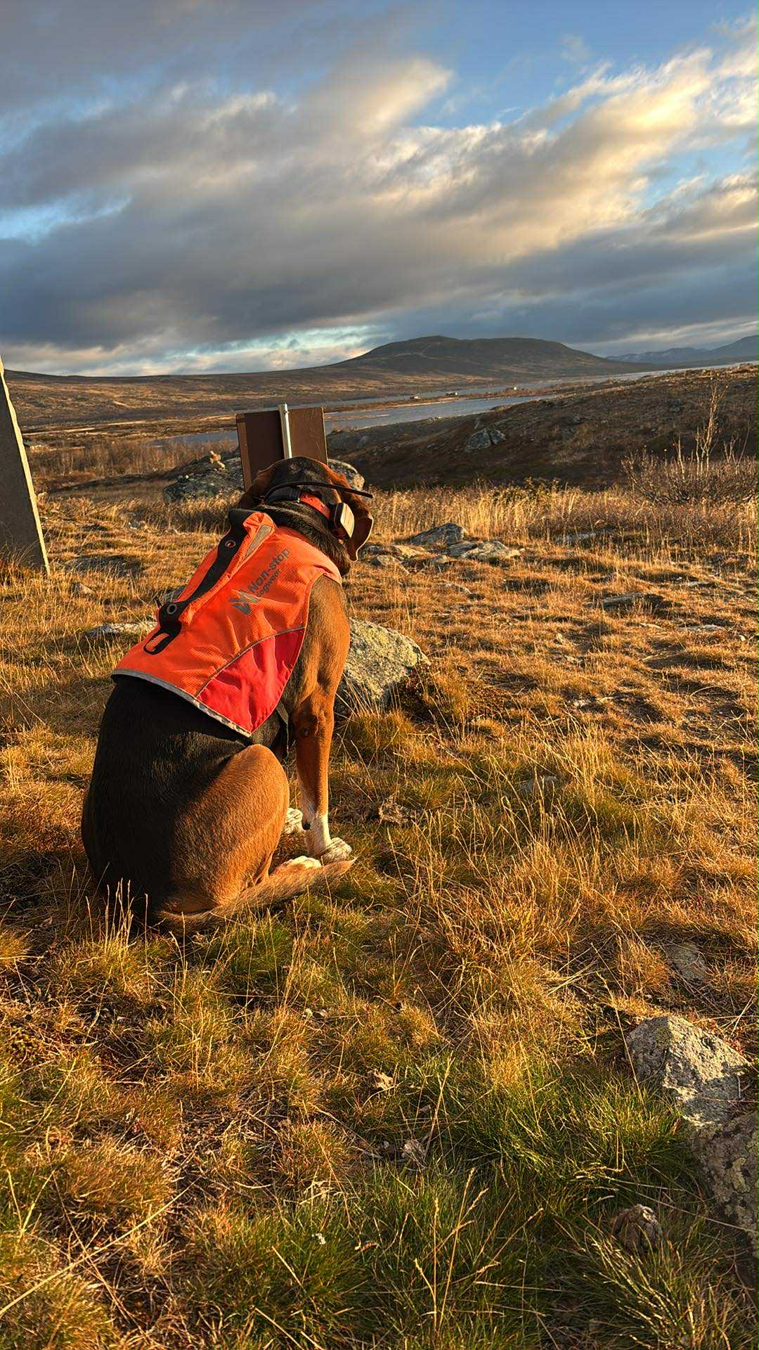 Tar med Bellman över dämningen och släpper. Han springer rätt ner till sjön och dricker vatten. Sen får jag inte ens tid att dricka kaffe innan han sätter sig vid min sida. Han har bara ögon på ryggsäcken. Vi njuter soluppgången en stund innan jag bestämmer mig för att avsluta. Bellman är lite halt fortfarande och han är inte intresserad av att gå på sök själv. Kort harjakt. Men en fin morgon.