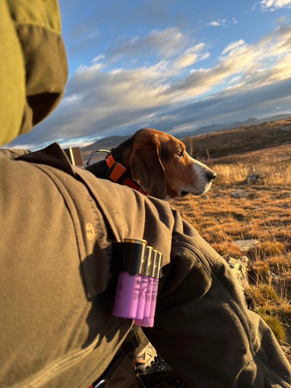 Han väcker redan efter 6 minuter 07:36. Upptaget kommer inte långt efter. Och han är i gång. Den här haren har vi jagat på förr och jag sätter mig på posten. Bellman är hyfsat nära haren när den hoppar ut på vägen och följer vägen upp till krysset där jag och Churchill sitter. Fälde haren 08:25