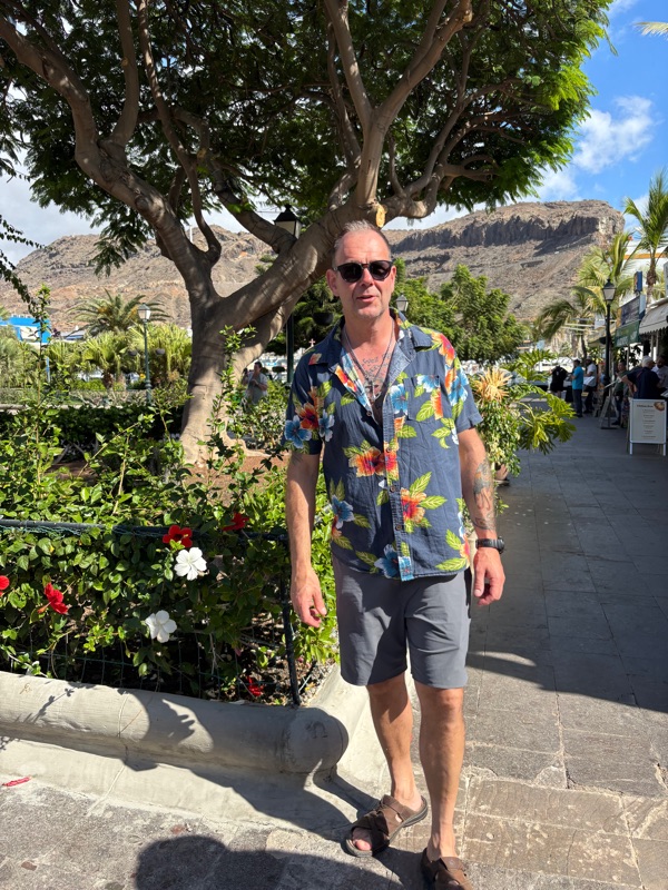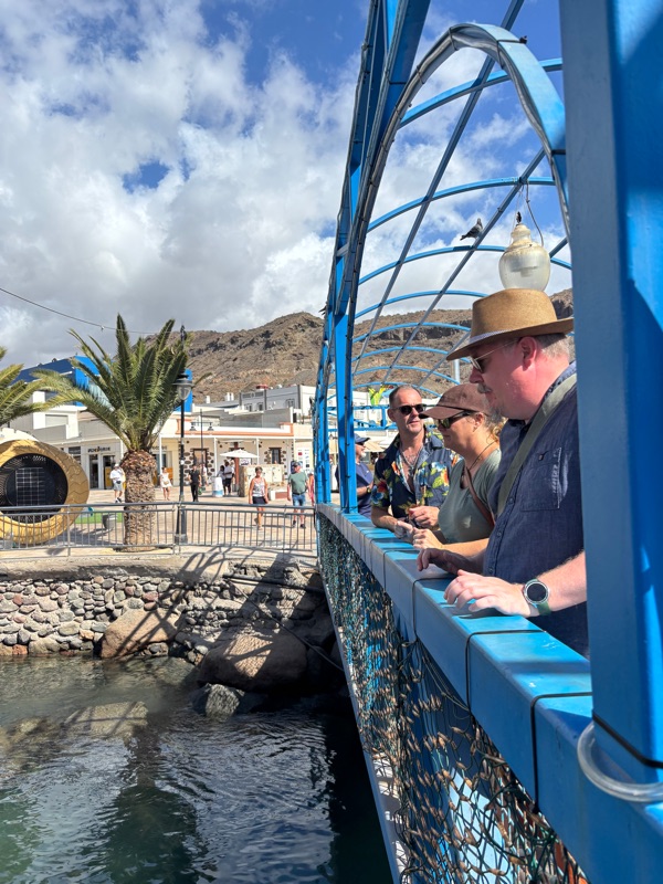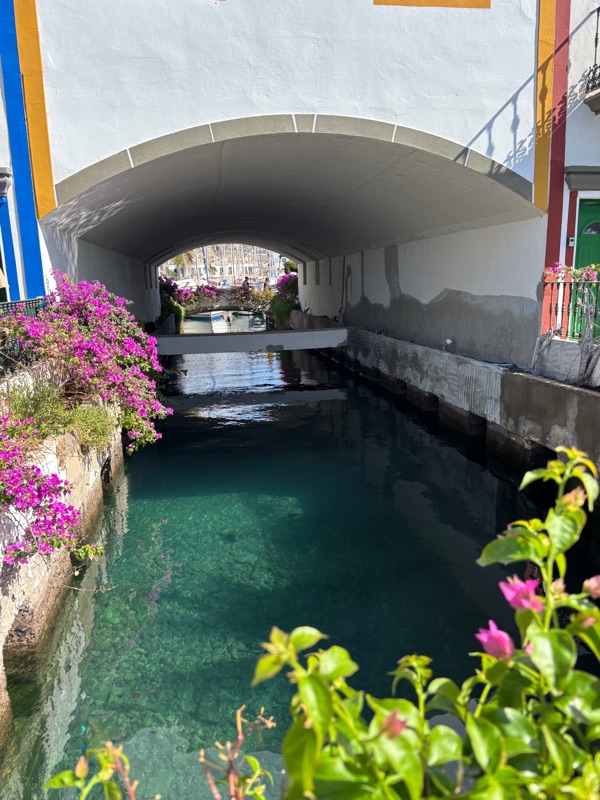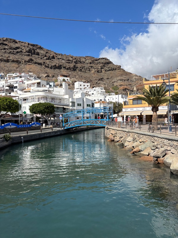 En lång morgonpromenad i morse genom gatorna i Puerto Rico, längs med strandpromenaden och tillbaka. Lite julklappshandel på Mogan Mall. Efter det guidade Stine oss till Mogan där vi gick runt lite innan vi landade på en lunch restaurang.