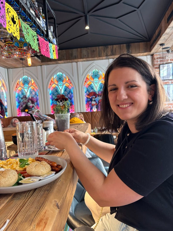 Frukost på en mexicansk restaurang vid sidan av hotellet.