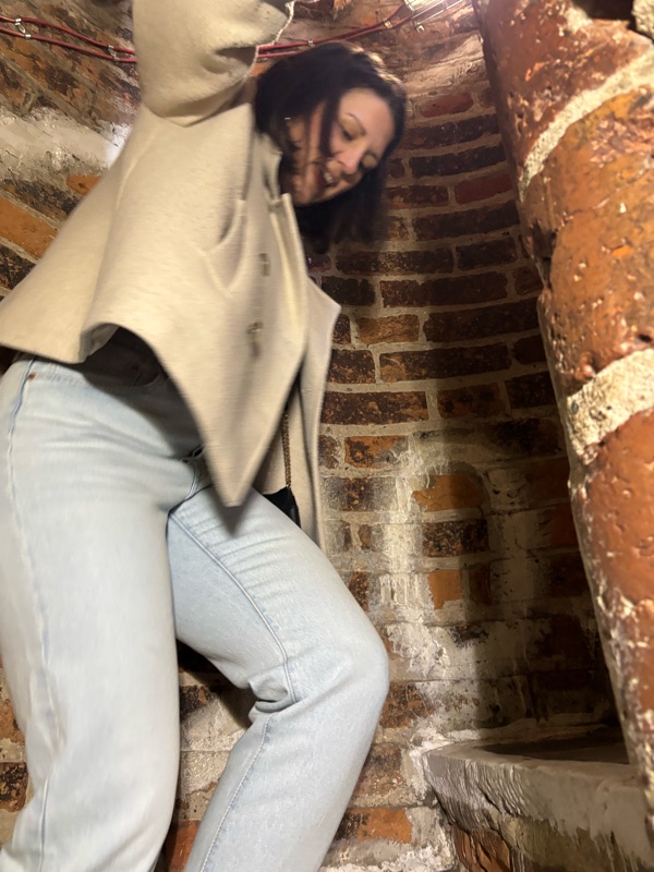 En smal slingrande trappa, leder upp tiöl taket av kyrkan.