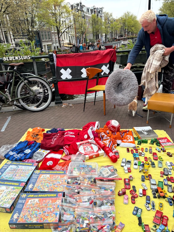 Ungefär som Årjängsmaten på steroider och lite mer oranget! Alla affärer är stängda men det är försäljare överallt. Det är nämligen ”amnesti ”. Alla får sälja på gator och torg. I Vondelparken är det små barn och familjer som säljer leksaker och saker de önskar att blo av med. Som en stor loppmarknad.
