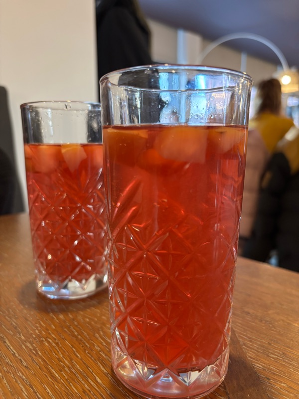 Kompottsaft. Smakade som kompott faktiskt, gott. Celina berättade att det var tradition att dricka till pirogerna.